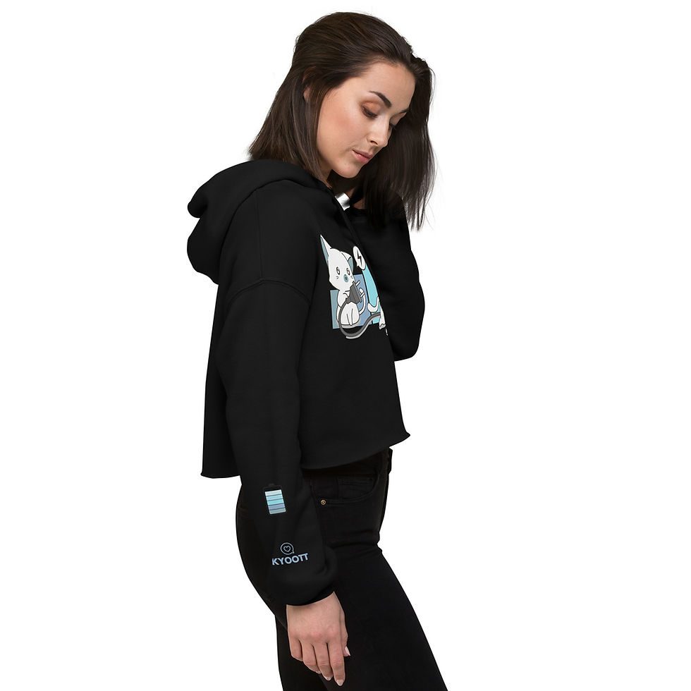 Cute Kittens - Recharging - Blue- Women's Cropped Hoodie